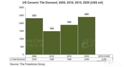 一直以來,美國是中國最大的陶瓷磚出口國。根據(jù)美國商務(wù)部和北美瓷磚協(xié)會聯(lián)合發(fā)布的數(shù)據(jù)顯示,截至2016年前三季度,美國瓷磚消費(fèi)總量為2.03億㎡,同比增加1.95億㎡,增長率為4.6%。近幾年來,美國消費(fèi)瓷磚有超過一半都是進(jìn)口磚,而在進(jìn)口國中,中國還是美國最大的瓷磚進(jìn)口國(2016年第3季度),占美國進(jìn)口的29.2%。據(jù)分析,美國對瓷磚的需求預(yù)計(jì)在2020年將達(dá)24億美元,比2015年的19億美元增長4.8%。