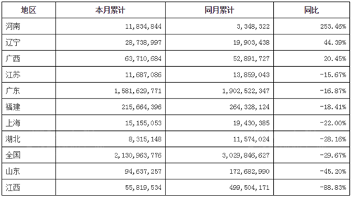 從出口增速看,2017年上半年我國陶瓷磚出口額前十地區(qū)中,河南、遼寧、廣西同比正增長,增速分別為253.46%、44.39%、20.45%;江西、山東降幅居前,同比下降均在40%以上,其中江西下降幅度最大,同比下降88.83%,出口占比較上年同期減少了13.87個(gè)百分點(diǎn),由上年同期第二位降至第五。