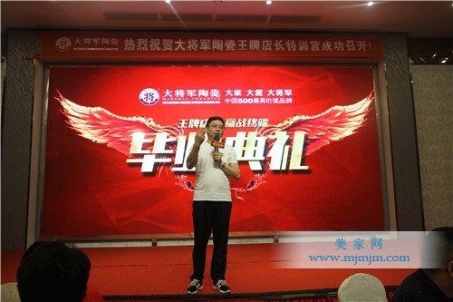 畢業(yè)盛典上,譚總表示看到大家身上呈現(xiàn)的將軍士氣,不屈不撓,堅持不懈精神,對大將軍陶瓷的未來、對大將軍家人更是充滿信心,總部也會一如既往的支持各位大將軍家人,未來公司也將特別組織相關明星店長的評選活動,讓各位大將軍家人一展才華,彰顯大將軍風采風貌。