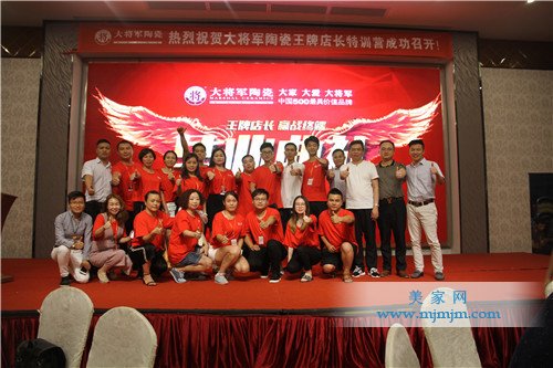 快樂工作心中有夢,齊心協(xié)力共創(chuàng)輝煌!群英聚集,同修同力,大將軍陶瓷王牌店長特訓營數(shù)百精英共聚一堂,在兩天三夜的學習中,精英們經(jīng)歷輪番考驗,聽專家名師授業(yè)解惑、實地參觀考察企業(yè)實力、系統(tǒng)梳理終端營銷環(huán)節(jié),激情奮進,不斷超越自我,滿載而歸,站在全新起點,開啟新的征程,為迎接終端市場新挑戰(zhàn)打下堅實基礎。