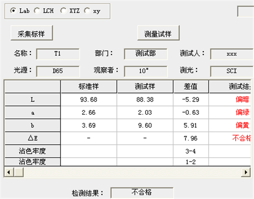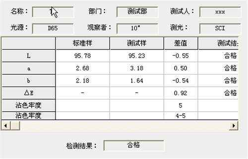 該產(chǎn)品色差實驗:LAB值方法的數(shù)據(jù)對比