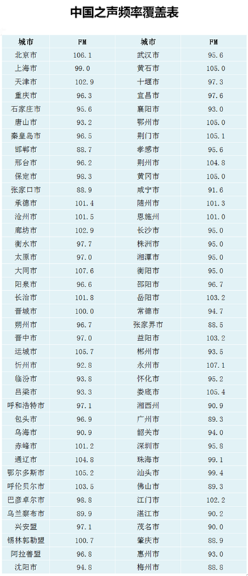 中央人民廣播電臺(tái)中國之聲是中國新聞界最權(quán)威、最具影響力的傳媒品牌之一,其信息輻射面廣闊、收聽群體龐大,一經(jīng)播出可迅速到達(dá)全國各級(jí)大、中、小型城市,甚至各個(gè)縣城和鄉(xiāng)鎮(zhèn)乃至接收不到任何其余廣播電視信號(hào)的中國廣闊邊境線,也就是說,遠(yuǎn)在邊疆站崗的兵哥哥也可以聽到金絲玉瑪哦!