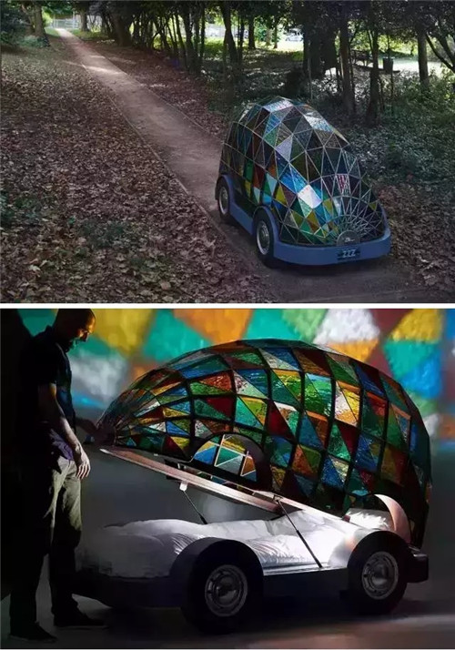 未來無人駕駛汽車,車?yán)锓帕艘粡埶,變身小房車,在睡夢中也能抵達目的地。