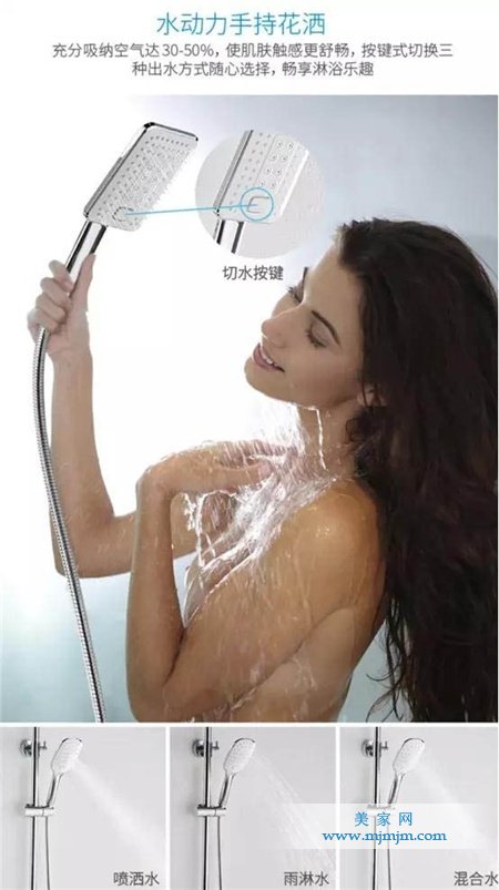 雨淋水,水流清爽柔和,帶給你們天然雨淋般的沐浴享受;混合水,水流急湍,可以起到按摩放松的作用;噴灑水模式,水流最為強(qiáng)勁。三種不同的噴水方式任意挑選。讓你隨時(shí)保證新鮮感。