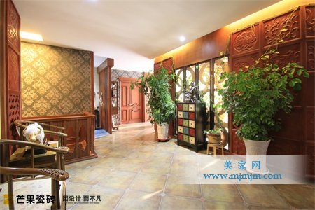 過(guò)道以古樸做舊的圓角仿古磚打底,輔之做工精致,雕刻精細(xì)的實(shí)木桌椅作為點(diǎn)綴裝飾,增加了過(guò)道空間濃郁的懷舊氣息。