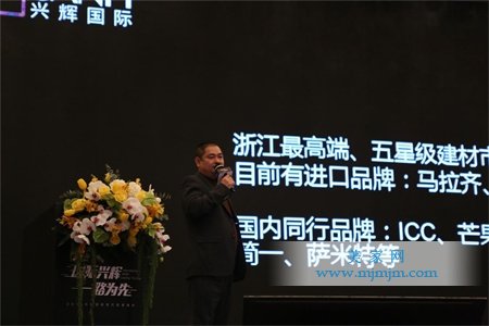 ▲興輝瓷磚品牌副總經(jīng)理沈輝先生講解2018年新品市場(chǎng)定位及市場(chǎng)策略。