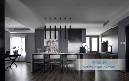 本案業(yè)主喜歡簡潔的黑白灰空間,深灰色背景,沒有多余的造型,客廳柜子增加整體儲物空間。趙無極現(xiàn)代裝飾畫點(diǎn)亮空間,開敞式廚房的設(shè)計,使整個空間更加開闊,更好的利用了自然采光。淺色沙發(fā)與深色背景的對比使空間看起來更加明亮,配合著頂固現(xiàn)代門讓整體更統(tǒng)一。衛(wèi)生間不同于傳統(tǒng)墻磚的拼貼,做了不一樣的設(shè)計,使兩種規(guī)格的墻磚豎向鋪貼,更加有趣。