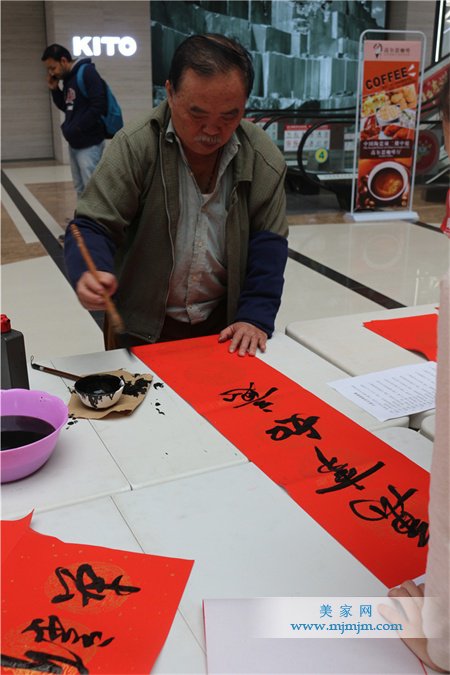 現(xiàn)場由大家文房書法名家即席揮毫,寫春聯(lián)、寫福字贈送給粉絲們。面對名家作品,大家都充滿期待,紛紛排隊耐心等待作品誕生,帶回家呢!