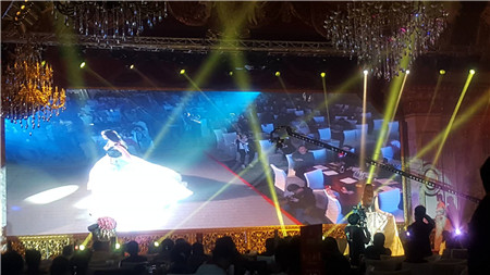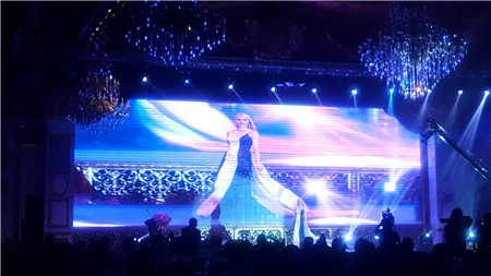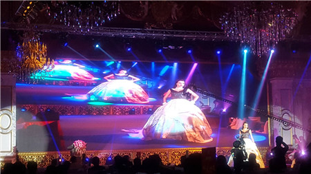 年會現(xiàn)場,不僅有象征著金舵起源于海洋文化的“金舵號”輪船和“海上美人魚秀”,還有金舵瓷磚的“新品時裝秀”,以及不同種類、不同花色組成的瓷磚秀場。