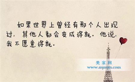 “如果世界上曾經(jīng)有那個(gè)人出現(xiàn)過,其他人都會(huì)變成將就,而我不愿意將就。”