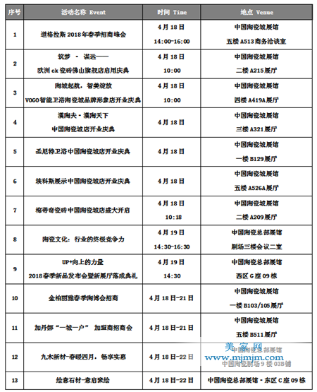 據(jù)了解,截至目前組委會收到的將在展會期間舉辦大型活動的企業(yè)就有三十多家,連同主辦活動、中小型活動,預(yù)計在展會期間開展的活動將不低于50場,囊括了儀式、營銷、新品發(fā)布、設(shè)計、地產(chǎn)、新商業(yè)、文化、國際等主題,匯聚了近百位營銷界、設(shè)計界以及地產(chǎn)界的大咖,從不同的維度與現(xiàn)場觀眾共襄陶瓷產(chǎn)業(yè)相關(guān)聯(lián)的發(fā)展方向。每場活動都各具特色,每場活動都有屬于自己的freestyle。