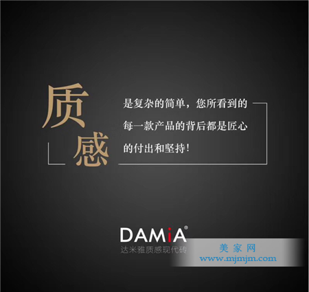 達(dá)米雅磁磚,作為一家專注質(zhì)感現(xiàn)代仿古磚的高端品牌,自創(chuàng)立以來就一直堅持用心做好一片磚。每一片磚除了要有國際化的時尚花色,更需要具備超強的產(chǎn)品質(zhì)感以及高品質(zhì)的產(chǎn)品質(zhì)量,超強的產(chǎn)品質(zhì)感是達(dá)米雅磁磚一直以來的生命線。正是在這樣嚴(yán)格的工匠精神的引領(lǐng)下,達(dá)米雅磁磚贏得了來自日本、韓國、澳洲、美國等國際客戶的信賴,同時也吸引了一批高品質(zhì)的經(jīng)銷商的投資。
