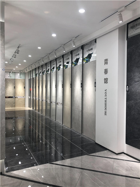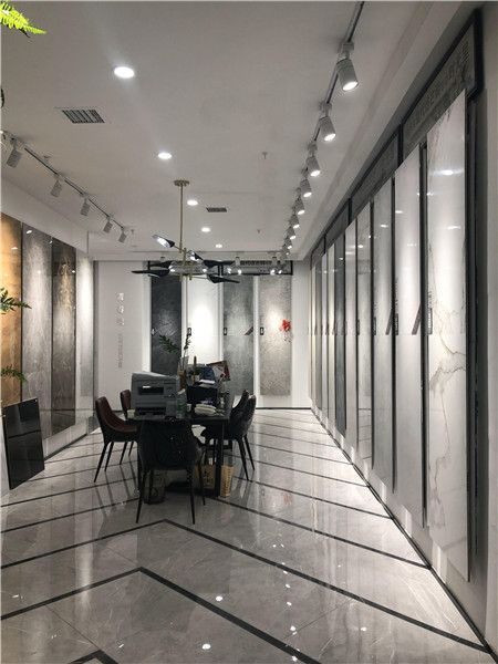 這是大板的選材區(qū),選用打豎的陳列方式,射燈照射下的產品,干凈、整潔、大氣、直觀。