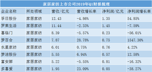 就整個(gè)家紡行業(yè)第一季度的表現(xiàn)來(lái)說(shuō),無(wú)論是營(yíng)收還是凈利潤(rùn)的增長(zhǎng)都不平均,增幅無(wú)法達(dá)到一致水平,負(fù)增長(zhǎng)較多。2019全年能否突破還有待觀察。
