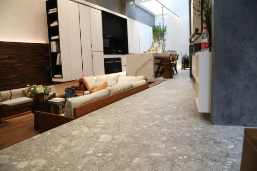 水磨石吸引人的地方,是斑駁不均的紋理和配色,提升了室內(nèi)活躍度,搭配綠植襯托,每一步都仿佛走在戶外的石子路上,愜意并悠然。應(yīng)用在廚房、客廳、陽臺等空間更是功能性與藝術(shù)性的結(jié)合,其耐磨防污的屬性,為家居生活增添了不少便利。