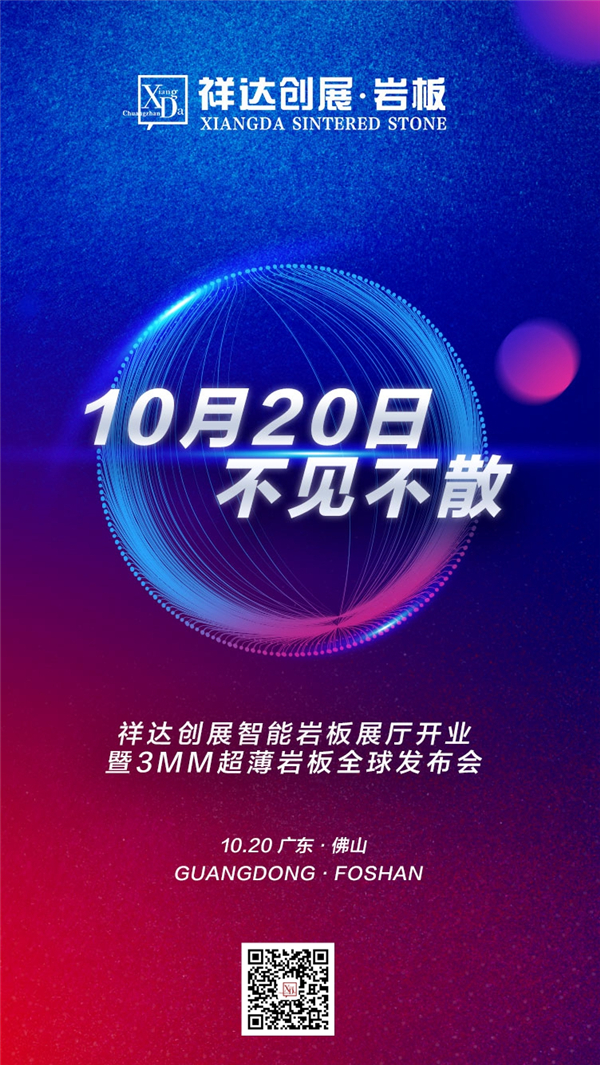 茲定于10月20日,為祥達集團智能巖板展廳開業(yè)暨3mm超薄巖板全球發(fā)布會,屆時來自世界各地的合作伙伴將有機會一睹【3mm超薄超大巖板】新品的風(fēng)采。巖板新藍海,共創(chuàng)新未來,祥達集團誠摯邀請更多合作伙伴加盟,共創(chuàng)、共享、共贏!詳情請關(guān)注