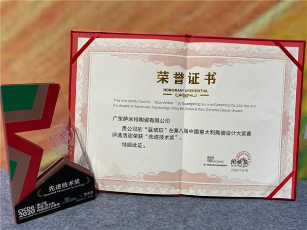 榮獲中意陶瓷設(shè)計大賽先進技術(shù)獎