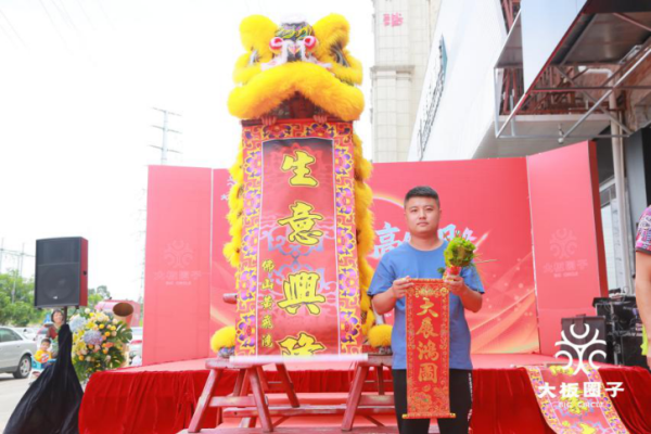 隨后,廣東大板圈子巖板科技有限公司董事長蘇錦川,特星佛山分公司董事長謝寶貴,福建中侖新材料有限公司董事長曾國才,廣東大板圈子巖板科技有限公司董事吳友湖一起為威風(fēng)凜凜的醒獅點睛。獅子點睛繁榮富貴,簪花掛紅生意興隆,隨著金花禮炮齊鳴,醒獅抖擻精神,騰空翻越,為在場的各位嘉賓送上了佛山本土精彩的醒獅采青表演,引得現(xiàn)場的掌聲和歡呼聲此起彼伏。并由廣東大板圈子巖板科技有限公司董事蘇煌杰進(jìn)行接青,寓意大板圈子在未來事業(yè)興旺,宏圖大展。