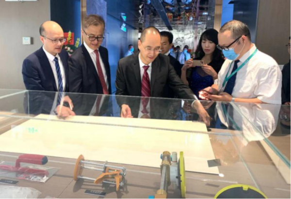 ▲領(lǐng)導(dǎo)與來(lái)賓觀賞3毫米薄板演示