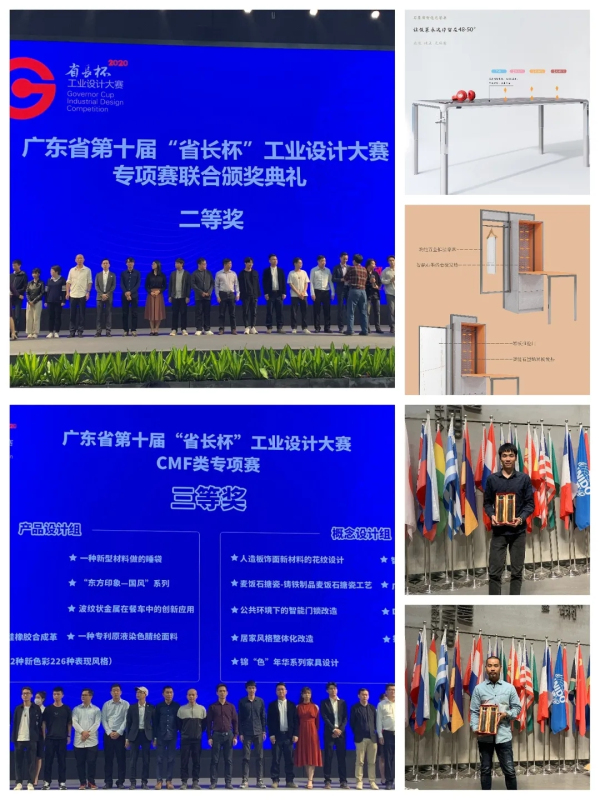 由新明珠集團產(chǎn)品應用團隊設計的“黑科技”概念產(chǎn)品——智能石墨烯巖板發(fā)熱餐臺、智能石墨烯巖板發(fā)熱多功能衣柜分別斬獲第十屆“省長杯”CMF專項賽概念設計組二、三等獎。