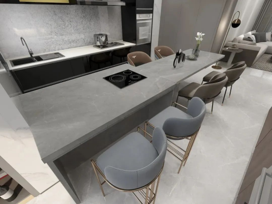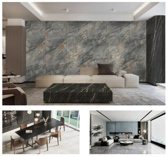 生態(tài)巖板在博德體系中,巖板應用范圍多樣廣泛,可定制、全屋整裝翻新及快裝,例如鋪地面:超大規(guī)格無限延伸,讓空間簡潔大氣,滿足設(shè)計師的設(shè)計需求,釋放自由想象;上墻面:室內(nèi)應用一片到頂效果大氣,超強抗UV,風吹日曬不變色,高耐候性,理想外墻建材;造柜面、臺面:零吸水零滲透,抗污抗菌易潔,阻燃耐高溫,耐強酸強堿腐蝕,超強硬度抗壓耐磨,刀過無痕,各種極端使用條件全方位應用;還可以做門板隔斷:輕薄耐用,質(zhì)感突出,超低膨脹,永不變形,零甲醛零排放,健康環(huán)保。