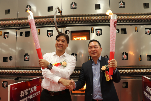 11月8日上午,將軍企業(yè)巖板智能生產(chǎn)線點(diǎn)火儀式在肇慶巖板研究智造基地隆重舉行。將軍企業(yè)董事長(zhǎng)柳朝陽(yáng)高舉火炬帶領(lǐng)公司骨干和嘉賓在11點(diǎn)08分正式啟動(dòng)行業(yè)首條雙層窯爐,這次點(diǎn)火儀式是將軍企業(yè)發(fā)展歷程中的一大盛事,預(yù)示著打造“巖板示范基地”又邁出成功的一大步,成為當(dāng)代建陶巖板的不可忽視的新生力量。