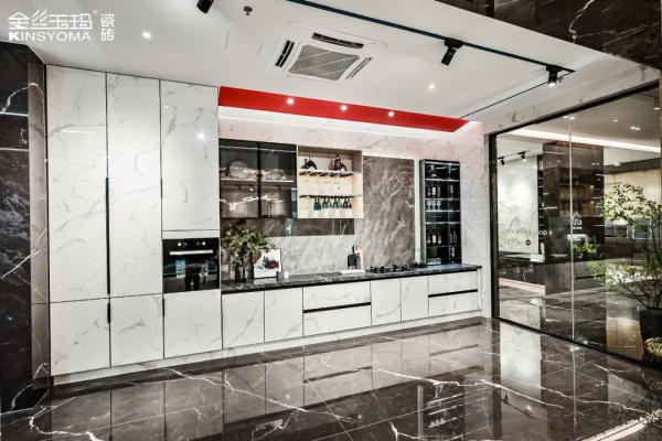 相比常規(guī)巖板,高端時(shí)尚帶點(diǎn)金的K金巖板更具市場(chǎng)競(jìng)爭(zhēng)力與品牌識(shí)別性。同時(shí)K金巖板還大力進(jìn)軍大家居行業(yè),應(yīng)用廣泛,可運(yùn)用于家具之中,乃大家居定制必不可少的精品材料。而且我們不僅有K金產(chǎn)品,還有規(guī)格多樣的各類產(chǎn)品,能夠最大限度滿足業(yè)主更多層次的需求。