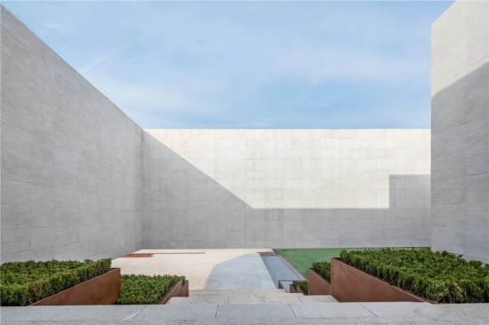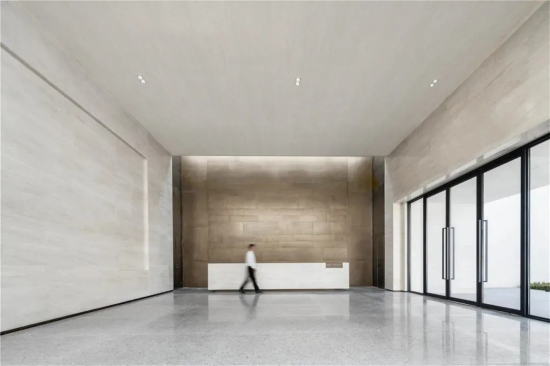 拾級而上,人的視線順著坡地延伸的角度,尋找到入口的方向,襯托出極簡的外觀視像。設計師在建筑的美學基底上,將藝術紋理的昭示性融入空間之中,更像是對周時文化印記的再一次溯源,指引著光線恰到好處的滲透。